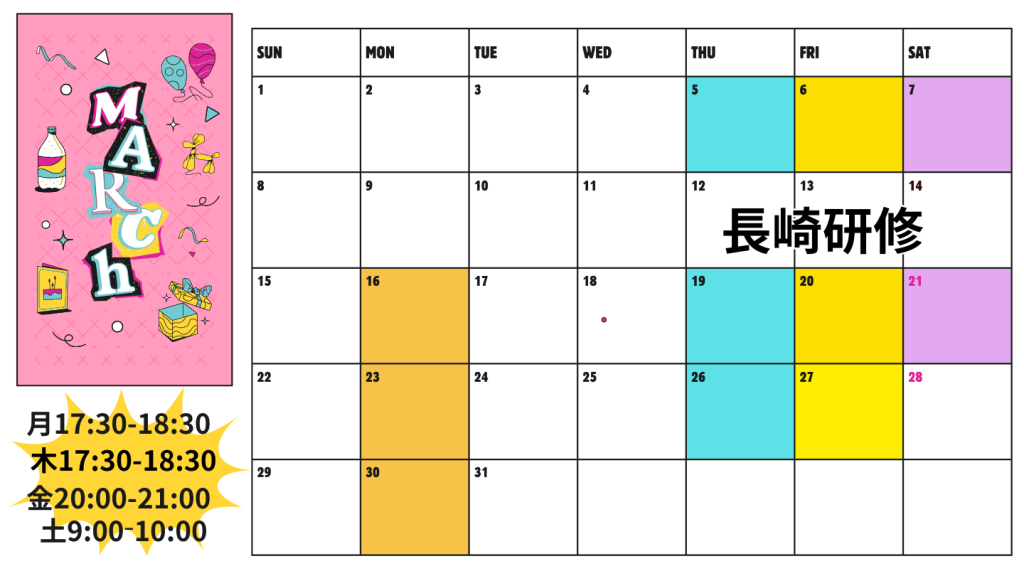 3月のレッスン予定のお知らせ